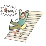例:夜、雨で濡れたスロープで滑って転び、手をねんざした。