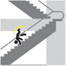 踏み段と周囲のすきまに、履物、靴ひも、指、衣類、マフラーなどを巻き込まれ、身体に危害が加わる