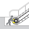 ![]() 踏み段と周囲のすきまに、履物、靴ひも、指、衣類、マフラーなどを巻き込まれ、身体に危害が加わる |