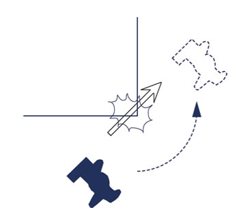 人は前方にコーナー部分や障害物がある場合、できるだけ内側を歩こうとするが、障害物の位置・大きさ・形状を見誤ると、身体の一部がそれに接触することがある。