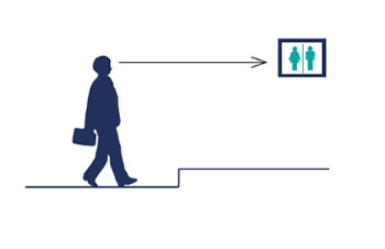 人は前方にコーナー部分や障害物がある場合、できるだけ内側を歩こうとするが、障害物の位置・大きさ・形状を見誤ると、身体の一部がそれに接触することがある。特に、視野外にある足元や頭上付近の出っ張りにつまづきやすい。