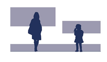 頭上付近と足元付近の視野外に障害物があってはならない。大人の目線で視野内にある障害物でも、子どもや車椅子利用者にとっては視野死角に入ることがある。